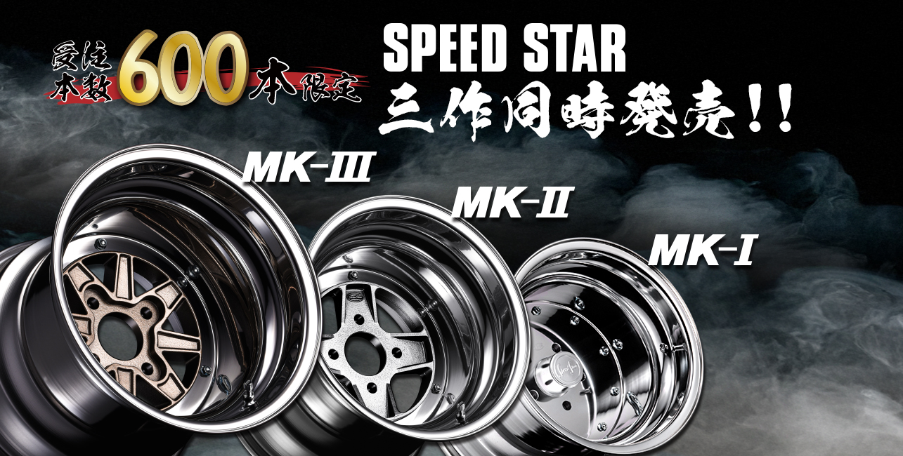 Latest information "SPEED STAR MK-1/2/3 復刻版ワイドリム" 数量限定販売" 迷うなら、今しかない。MK-1/2/3復刻サイズ同時発売。 "SSRノスタルジックアワード2026" 1999年までに発売された旧車オンリーのフォトコンテストを開催!!Instagramからぜひご参加ください。 "2026 MODEL NEW RELEASE CAP CAMPAIGN" "2026 MODEL NEW RELEASE OPTION COLOR CAMPAIGN" "M14 ✕ 21HEX LOCK & NUT SET新発売" "17HEX RACING LOCK & NUT SET新発売" "1/64 ジオラマ用ペーパークラフトキット 1/64ミニカーを飾るのにピッタリなペーパークラフトキットを配布中 ”SSRハブリング 追加ラインナップ" 2ピース・3ピースホイールの特殊P.C.D.に合わせ、輸入車向けサイズがさらに充実!特注ハブリングとして追加になりました。 "あなたのアルミホイールは大丈夫ですか?" アルミホイールを安全にご使用いただくには、日ごろの点検が重要。JAWA認定ホイールならさらに安心です!!