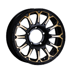 製品の特長 SPOKE いかなる悪路にも対応できるストロングな12スポーク。 施されたポリッシュ部は、あえてスポークエンドからセンターに向けてフラットに設計することで、新色<ディープゴールド>を最大限にアピールし、性能とデザイン性を両立している。 DETAIL 補強リブをアウターリム全体に施すことにより、ホイール全体の強度を確保。 想定外の環境に対応する設計を追求。 ダミーピアスは、SUVの足に相応しい造形を演出するアクセントとして、スポークエンドに一つ一つ手作業で打ち込んでいる。 CENTER CAP それぞれのP.C.Dに合わせた、最適なセンターキャップを用意。 6HOLE用には専用のハイタイプを設定。ワイルド&タフなデザインを採用することで、4WDに見劣りしない屈強さを与える。 5HOLE用&4HOLE用には、シンプルなフラットキャップを採用。 ※16×5.5J 5/139.7用はセンターキャップの設定はございません。ジムニー /ジムニーシエラには純正リアキャップが装着可能。