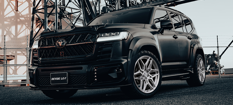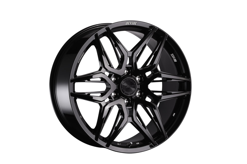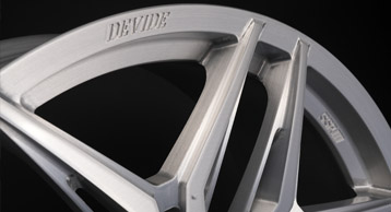 製品の特長 SPOKE 鍛造削り出し製法ならではの鋭いエッジを有するスポークラインを形成。V字を描くスポークは繊細で、リム外周からセンターに向かって直線的なコンケイブ形状に。そこにキワドさのあるサブスポークを融合させることで個性を演出。 CENTER PART センターパートのデザインも、ナットホールをスクエアに削り込むなど、スポークに連動した複雑な形状を描く。ギア感のあるセンターキャップにはDEVIDE LG-Fのコンセプトを刻み、色はホイールと同色でコーディネートして一体感を生み出した。 FLANGE フランジはコンケイブフェイスにリンクさせた。すり鉢状に落とし込み、シャープさと力強さを両立。スポークとの接合部は先端が突き刺さったような形状で鋭さを演出。DEVIDEとSSRのロゴはミーリング加工を施し、アルミ本来の輝きを放つ。 Forging Technology DEVIDE LG-F は削り出し鍛造製法を採用。サイズごとにカットしたビレットを10,000tプレスの超高圧鍛造機にて形成後、スピニングによって加圧しながらリムを成型。DEVIDE LG-F の複雑で繊細なデザインは高精度を誇る三次元マシニング加工によって生み出されている。