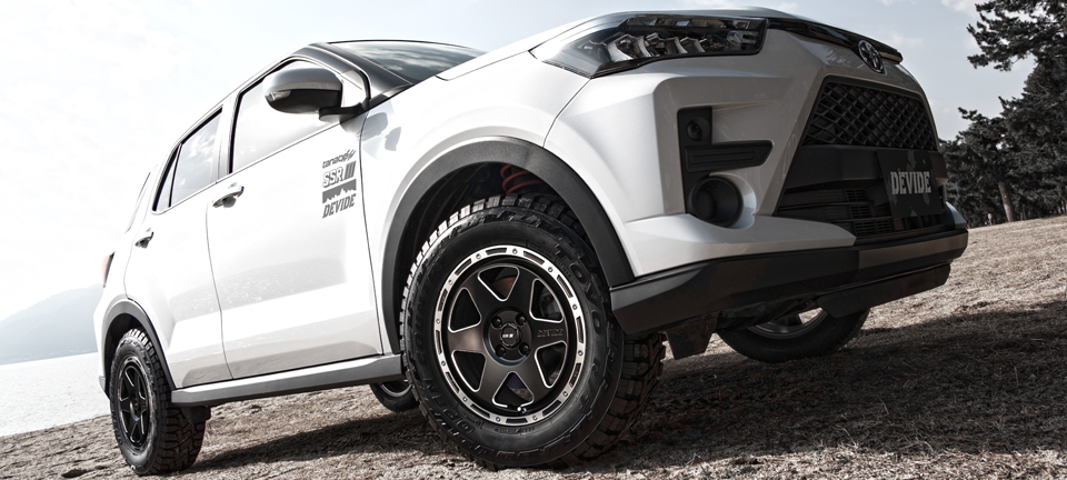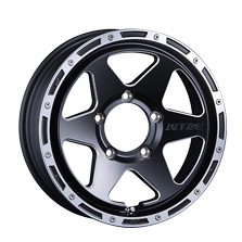 製品の特長 SPOKE ターゲットとなるSUVに相応しいカタチを追求した、強度と剛性を兼ね備えた6本スポーク。 安定感に富んだ強靭なデザインで力強さをアピールします。 エッジマシニング スポークの開口部の外周は、ミーリングという精密切削を採用。切削痕がハイライトとなり、硬質かつ堅牢なイメージを演出します。 ビードロックデザイン リムフランジを切削し、「ビードロック」のようなデザインを表現。等間隔に打ち込まれたピアスと共にアグレッシブさを高めています。 センターキャップ A-type HI センターキャップは4輪駆動車のハブ形状をイメージした高さのある意匠。サイズによって異なる2種類を用意。 センターキャップ B-type HI Aタイプよりも高さをさらに増したBタイプキャップ。 マットブラックで精悍な印象を与えます。