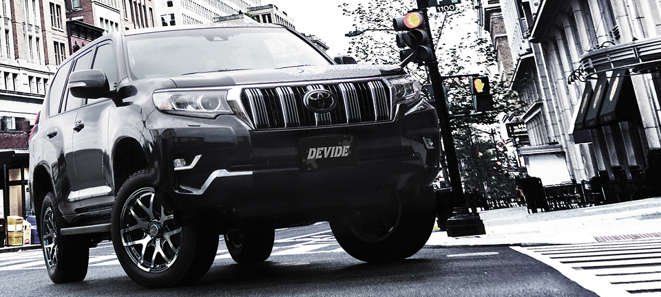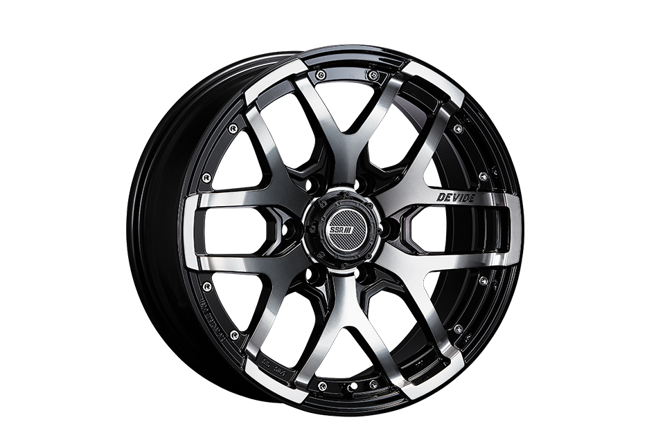 製品の特長 SPOKE 均整のとれたシンメトリーなクロススポークは、SUVに相応しい安定感をアピール。リムオーバーデザインとすることで、迫力を増幅させました。また、フランジから1段落とし込みリムの深みを強調。ラウンドフェイスは立体感も高めます。ピアスボルトはスポークをがっちり受け止めるイメージで配置しています。 CENTER PART スポークが集結するセンターパートは、スポーク感をリブで補強。堅牢かつ強固な印象を演出します。センターキャップは6HOLE用に専用のハイタイプを設定。往年の4WD車のハブにインスパイアされた意匠で、無骨なタフさを与えています。なお、5HOLE用にはシンプルなフラットタイプを採用しています。 MACHINING LOGO SUVのヘビーなボディを支える足元だからこそ、このタフなスポークデザイン。その筋肉質な起伏のトップに精密加工されたマシニングロゴを配置。少しトーンを抑えたアッシュブラックのクリアでも確実に存在感をアピールします。