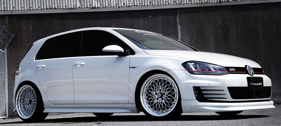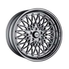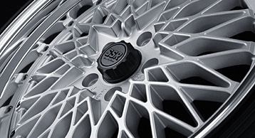 製品の特長 メッシュライン 無数のスポークで編み上げるクラシカルなメッシュライン。現代の車両のスペックに適合させつつ、スポ―クの長さや奥行き、交点の繋がり、さらにセンターパートのボリューム感まで、精密に当時のバランスを再現しました。ゴールドとシルバーを用意したフィニッシュも、あえて鋳肌の質感を残す2コート仕上げ。味わい深いアナログなテイストです。 センターパート 18/19inchはスター、16inchはクロス。フォーミュラメッシュのセンターパートの形状は、意図的なものではありません。荷重を無数の細いスポークで支える本来のメッシュ構造に、5ホールや4ホールといった条件が加わることで偶然現れた、正に機能的な造形なのです。ハイトがある樹脂製のセンターキャップも当時のまま。やはりこの顔つきにはこのキャップです。 ファスナー&ピアスボルト ディスクとスポークを繋ぐファスナー部は、当時のイメージを継承しつつも、大型化した現代のクルマの車重やパワーに対応した設計にモディファイしました。3PIECEホイールの象徴であるピアスボルトは当然クラシカルタイプを標準装備。なお、リムの形状は18/19inchが硬派な段リム、16inchは視覚的に径をよりワイドに見せるフラット(リバース)仕様を採用。