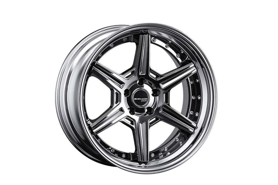 製品の特長 SPOKE LINE スポークの中心を120度のV字型に彫り込んでいるのが特徴。この造形によりキレのあるシャープな印象を演出しています。直線的なスポークのサイドに一段落としたリブにより6本スポークを際立たせています。 CENTER PART スポーク間のブリッジ状のリブは補強の効果と軽快さを両立し、アクセントにもなっています。また、センターキャップが収まる位置は突出を抑えて低くしたことで、よりコンケイブ感が強調できるフェイスに仕上げています。 FASTNER 高いデザイン性を誇るスポークを強調するために、ファスナー部は極めてシンプルにまとめています。ただし、ピアスボルトは必要不可欠で、スポークの立ち上がりとファスナー部の高低差を際立たせる重要な役割を、この小さなピアスボルトが担っています。 FACE フェイスはスタンダードコンケイブとスーパーコンケイブの2種類。「スポーク先端」と「センター」の高低差は前者が14mm、後者が35mm。フェンダークリアランスに余裕があるクルマならば、スーパーコンケイブを選択することで、より迫力のある佇まいに。 ORDER MADE INSET サラリと履きこなすかシビアに攻めるか、ミリ単位で調整可能なオーダーメイドインセットが様々なリクエストに対応し、理想のスタイリングを現実のものとします。