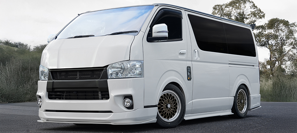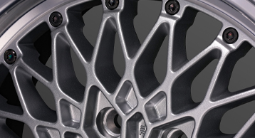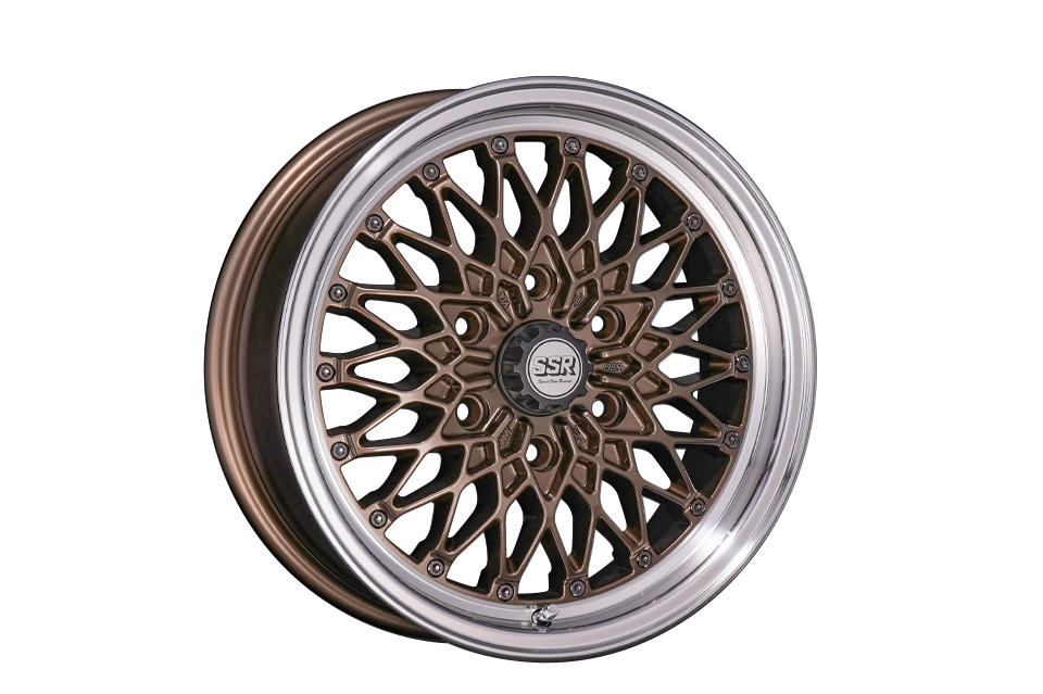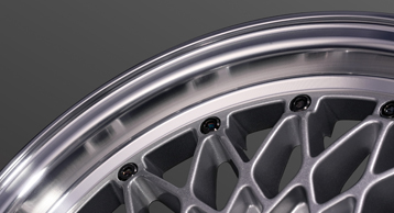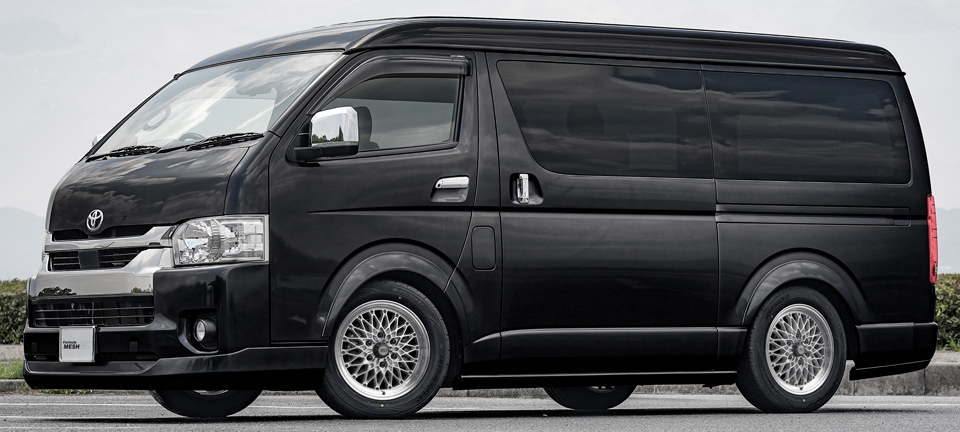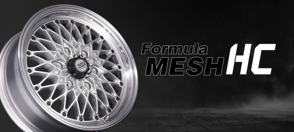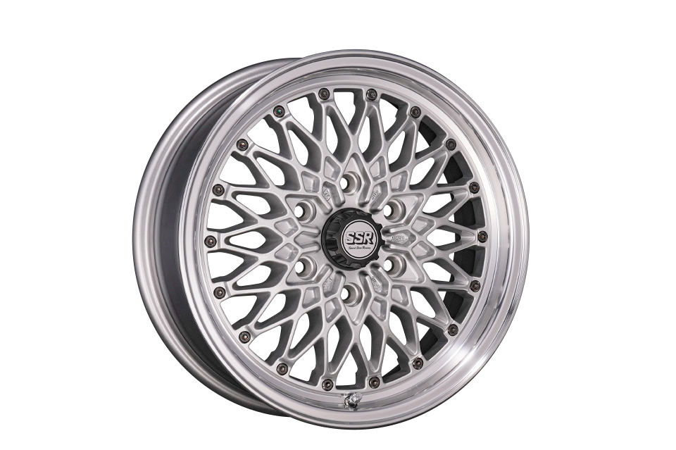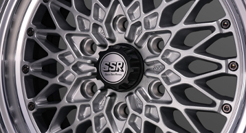 製品の特長 MESH LINE フォーミュラ メッシュのデザインを踏襲した上で、ハイエースに設定された高負荷強度基準をクリアするために、メッシュラインを最適化している。 CENTER PART センター部は6つのナットホールをデザインに取り込んだ星形を描く。広がりとボリューム感を兼ね備え、ハイエースに相応しい重厚な佇まいを演出。 FASTNER メッシュの先端に台座を設けてクラシカルピアスを装着。ファスナー部は軽量化のために肉抜きしたフォーミュラ メッシュの最初期モデルを彷彿させる形状に。 FLANGE リムはSSR独自の"FFT-R"でシビアな肉厚にて成型。強度はもちろん、アウター側のリム形状は切削による最終仕上げで高級感を演出。