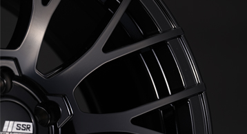 製品の特長 MESH LINE 先端を限界まで伸ばしたフランジオーバーデザイン。開口部もセンターのギリギリまで追い込み、脚を長く見せる。Y字のメッシュラインはシャープさが際立つ細さ。センターに繋がるスポークの根元は一段落とした位置にリブを入れて補強し、同時に立体感を演出している。 CENTER PART メカニカルな雰囲気を漂わせるセンターパート。スクエア形状のメッシュ開口部に合わせ、ナットホール部もスクエアに統一している。センターキャップの周りは駄肉を削ぎ落とすために深く落とし込んで肉薄化を図り、軽さとデザイン性を両立させた設計に。 FLANGE & UNDER CUT メッシュライン先端を浮き立たせ、視覚的にフランジに突き刺さっているかのように見せる。SSRロゴはマシニングで彫刻してアクセントを付けた。軽さを求めてフランジ接合部裏はアンダーカットで駄肉を削り、そのカットしたラインは見る者に軽快な走りをイメージさせる。