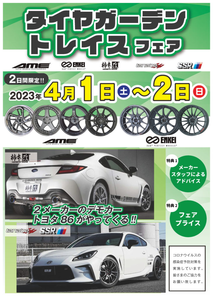 4月1日(土)~2日(日)の2日間、長野県松本市のタイヤガーデントレイス様にて