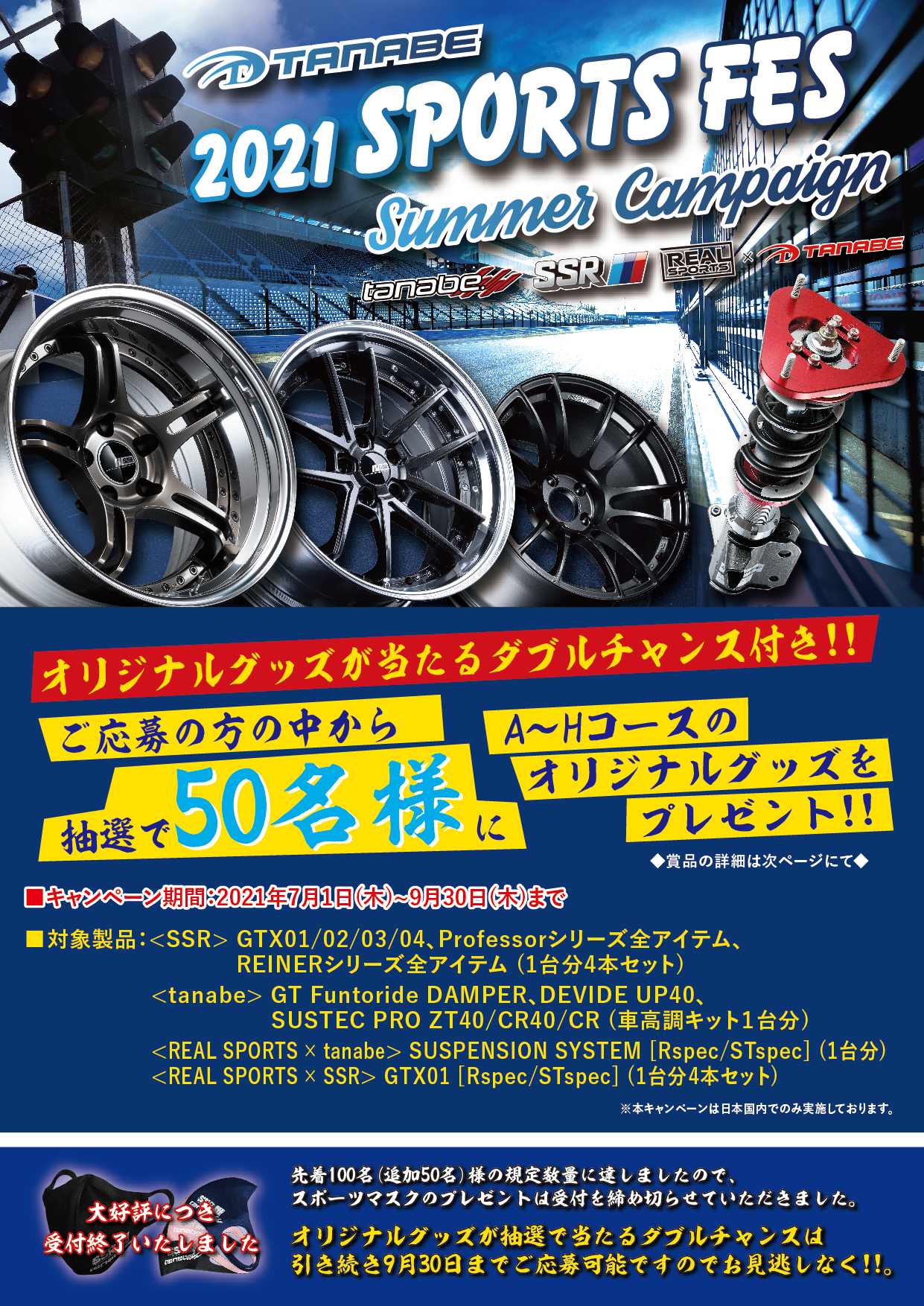 ※先着でもらえるスポーツマスクにつきましては受付を終了させていただきました。