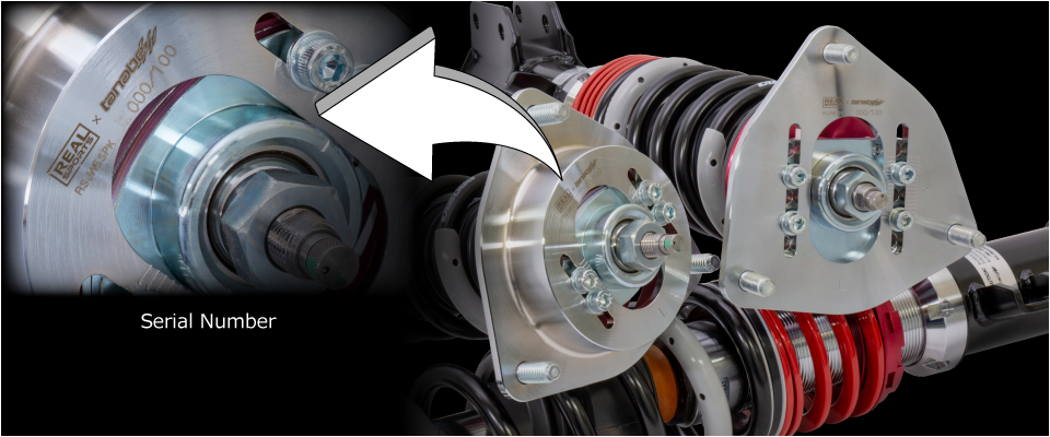 フロント、リア共にピロアッパーマウントを採用することで、キャンバー調整を可能としました。