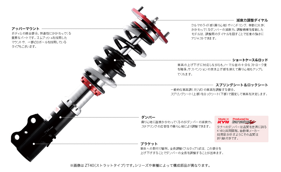 ラインナップも10万円を切るバリュープライスのモデルから、より高機能を発揮する減衰力調整機構付きや全長調整式、ピロアッパー搭載モデルなど多彩に用意。用途に合わせて最適なシステムがチョイスできます。