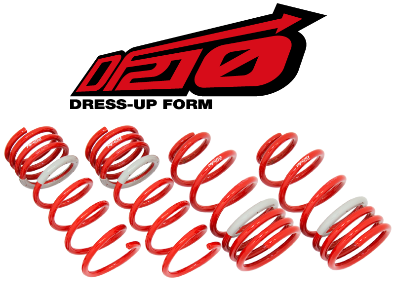 - NF210より、更に見た目のカッコよさを求めたダウンスプリングDF210。NF210同様に純正から大きな形状変更は行いませんが、ばねが遊ばない様に形状の変更・レートの見直し等 車高を更に下げる為に必要な変更は施しています。純正ダンパーの許容ストロークはNF210より少なくなりますが、最低限のストロークは確保し 見た目のカッコよさを求めたスタイルになります。